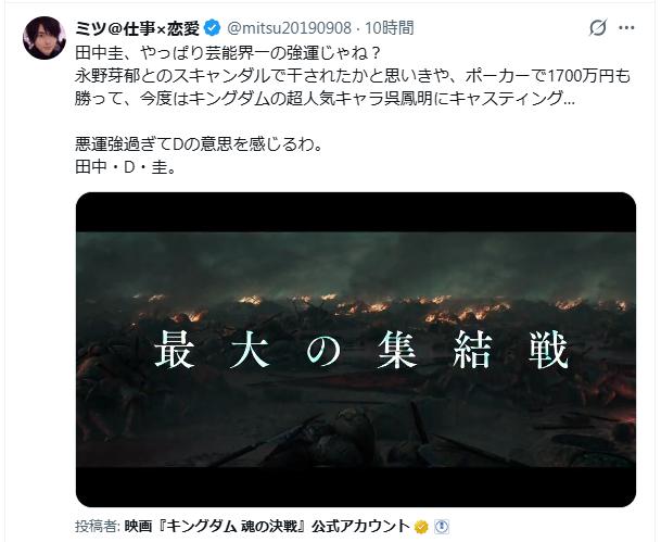 • 「スキャンダル→ポーカーで1700万円→キングダム出演は強すぎ」